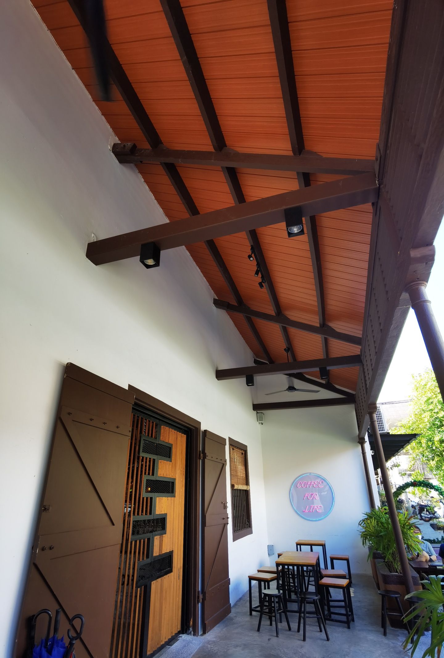 At Boston Coffee in Penang, the ceiling does more than complete the space—it defines it.